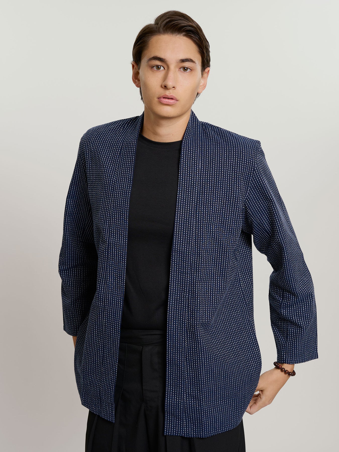 Thoughtfully designed with a relaxed, modern fit and inclusive sizing, it offers the ease of a cardigan while preserving the clean lines of a traditional haori; an ideal, versatile outer layer for spring, fall, and cool summer nights.
