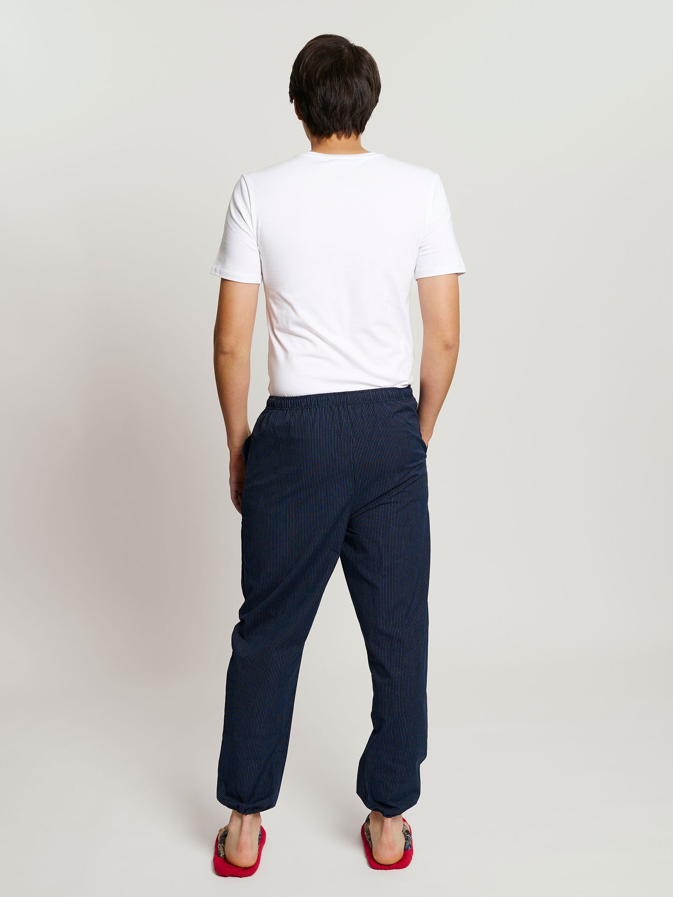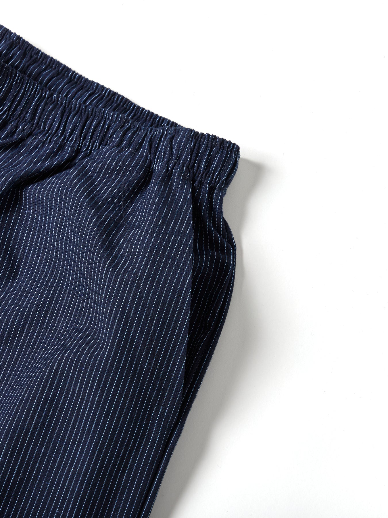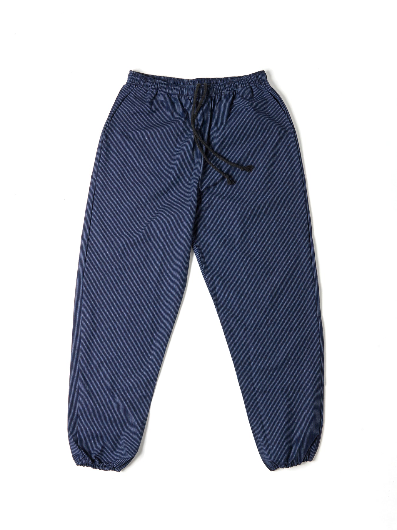 Monpe men’s cotton lounge pants are crafted in Kurume, Kyushu, a historic center of Japanese cotton weaving, bringing the ingenuity of traditional Japanese workwear into contemporary everyday style.